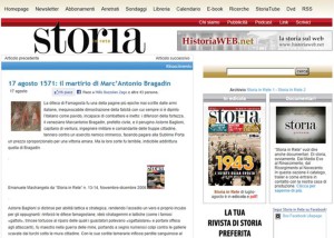 Oggi, con un'iniziativa degnissima e priva di sfondo politico (1), è stata celebrata una santa messa in memora dell'eroico Marcantonio BRAGADIN che il 17 agosto del 1571 venne trucidato dai turchi...