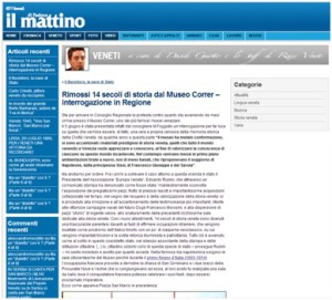 QUANTO TEME L'ITALIA IL RISVEGLIO DI COSCIENZA DEL POPOLO VENETO??? (da un articolo di Davide Guiotto) Rimossi 14 secoli di storia dal Museo Correr – interrogazione in Regione Sta per arrivare...