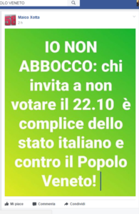 Ecco l’ennesima bufala di stampo italo/leghista. Questo è un referendum consultivo col quale non si decide nulla ed è solo propaganda elettorale che si fa tale LUCA ZAIA presidente dell’ente straniero...