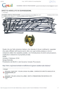 Nella tarda mattinata odierna una pattuglia della polizia locale del comune straniero italiano di Villorba (Tv) ha inutilmente tentato ancora una volta di notificarmi un atto italiano, forse il medesimo per...